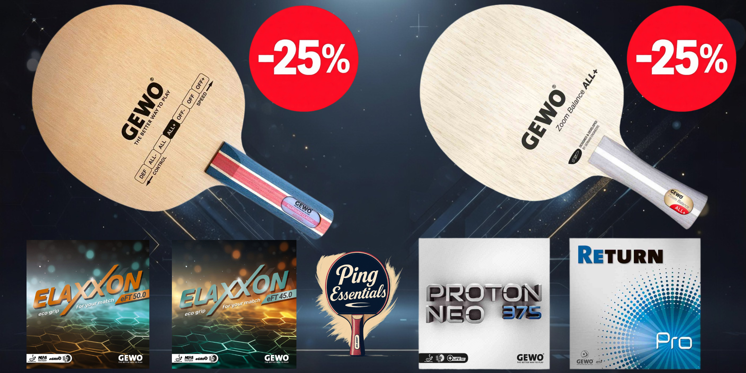 GEWO Raquette Zoom Balance + Proton Neo 375 + Return Pro