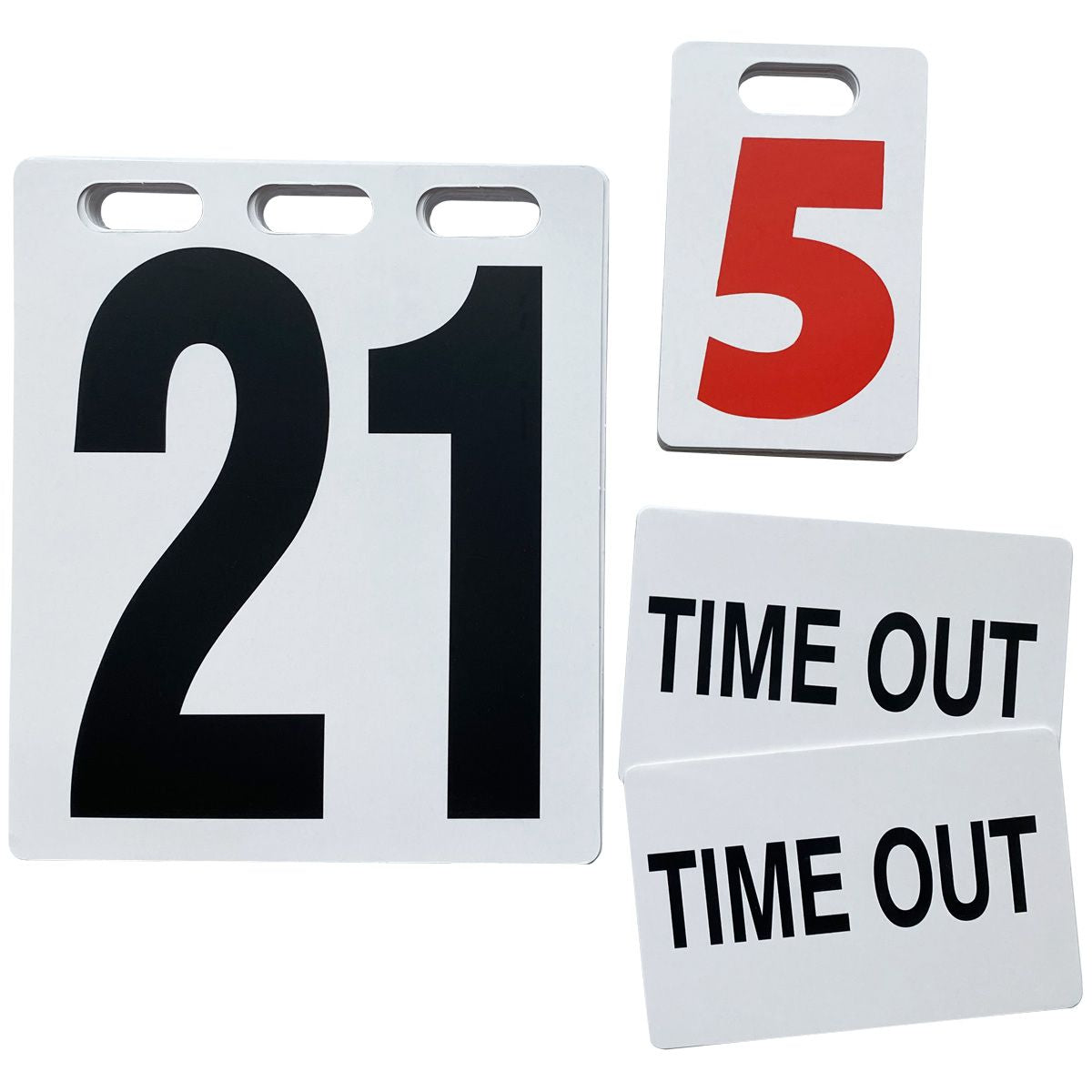 Contenu : Deux ensembles de grands nombres pour afficher des points de 0 à 21 et deux ensembles de petits nombres pour afficher les sets de 0 à 5.